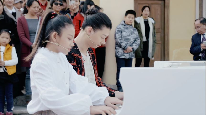 歌手霍尊的出现掀起了新一轮现场高潮。他与11岁“钢琴女孩”谢雨珊的四手连弹,将表达海峡两岸骨肉亲情的《鼓浪屿之波》融入《我和我的祖国》旋律之中。