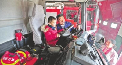 大年初二这天,陈巧彤本打算带着孩子到爸爸工作的中队,看一眼说几句话就走,没想到儿子看到了爸爸,更舍不得了。王宗阳带着5岁的儿子参观消防车,解释自己的工作。儿子对消防工作既好奇又崇拜。