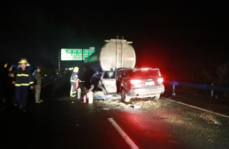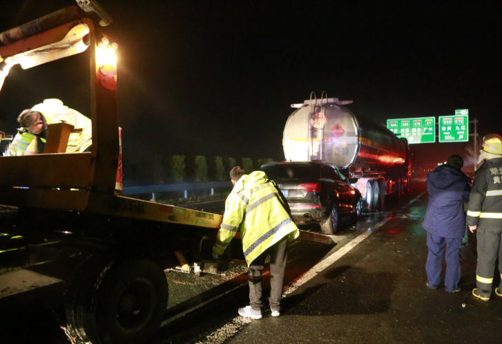 据油罐车司机介绍,追尾发生后,他与副驾驶立马将奥迪车上受伤的三人救出,并向“122”求救,避免更大事故发生。