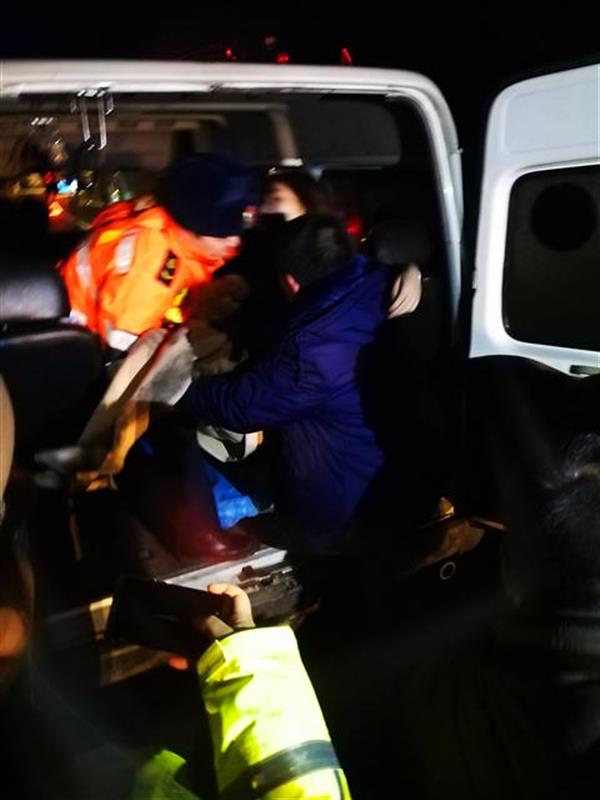 当日1时50分左右,黄黄支队机关春运分片保畅组执法人员巡查至大广高速广大向K2466+700M处时,发现对向车道浓烟滚滚,随即停车处置。只见现场一辆黑色豫GR0***奥迪越野车与鲁RA9***油罐车(载汽油32吨)发生追尾事故,越野车上3名伤者行动困难,并且油罐车尾部与越野车撞击结合部蹿出火苗,情况万分危急。三名执法人员立即分工,一边向路段监控中心报告情况,通知辖区高警、消防、救护、施救等部门增援,奔跑至事故现场车流末端指挥和警示车辆减速慢行,防止发生二次事故;一边向过往司机收集滞随车灭火器进行扑灭明火,将伤者抬离事故车,转移至安全区域,做好安抚工作。