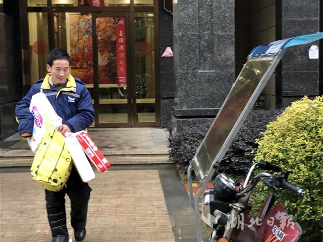 在江南新天地小区,他拿着包裹,多次敲门没反应。等出了小区,客户打电话说,自己在家没听到,他二话不说,掉头回去再送。
