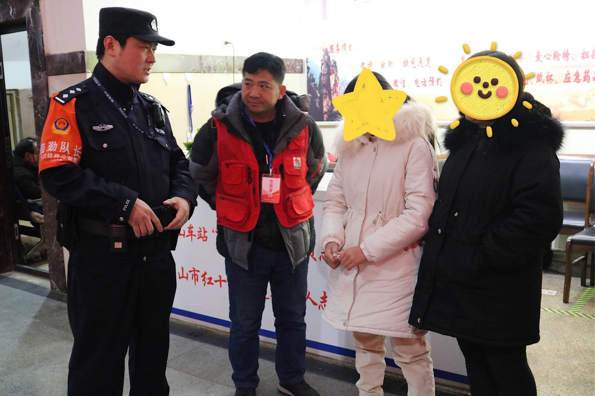 2月14日下午4时40分,武汉铁路公安处平顶山车站所的民警刘力争像往常一样在平顶山火车站内开展巡逻工作。当巡查至售票厅时,刘力争发现一名女孩独自一人在售票窗口,欲使用手机里一张户口本的照片购买车票。民警心中生疑,随即上前询问情况,但少女见到民警后神情躲闪,也无法提供有效身份证件,民警便将女孩带到公安值班室进行劝导询问。