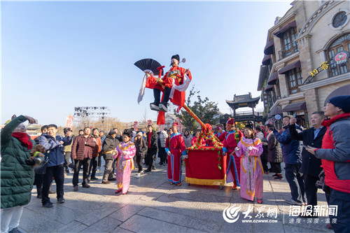 据了解,为了让更多人在出游时感受到传统的“年味儿”,2019年的台儿庄古城新春庙会以“弘扬传统文化 打造中国非遗年文化品牌”为主题,社火巡游、南北狮表演、火龙钢花、老北京天桥绝技、柳琴戏、鲁南皮影戏等近20种全国各地的“非遗”项目、经典传统文化项目纷纷亮相,让古城的游客过足了“眼瘾”,成为台儿庄古城“揽客”的“利器”。