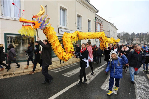 龙狮游行、写春联、包饺子、放烟花、看变脸、体验传统剪纸、包饺子……一个个饱含中国风的元素充满了塞纳古堡。据统计,近千名法国小学生在古堡中体验了中国春节文化和传统民俗;千余名当地民众参加了当天的龙狮游行;5000名当地及周边居民观看了迎猪年的焰火,并用中文共同喊出了“新年快乐”……“中国春节在法国古镇大批圈粉,让法国民众又一次感受到了中国文化的无限魅力”。
