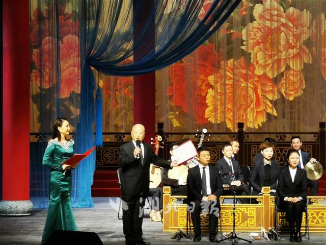 演唱会上,湖北省京剧院院长朱世慧现场主持演唱会。