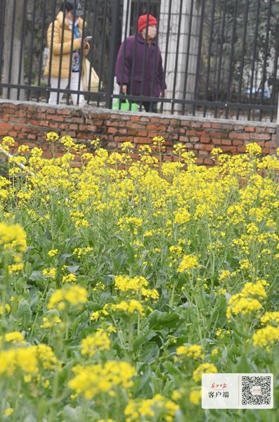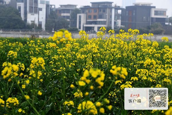 长江日报融媒体1月25日讯(记者李子云)2月25日,早春二月,在武昌团结大道旁的一片田地上,金黄的油菜花随风飘送清香。来来往往的市民,在闹市街头看到这一片嫩黄的花海,不由得心旷神怡。虽然不如乡间野外的油菜花田浩瀚、壮观,但也是城市里一道亮丽的风景线。让久居城里的都市人不用远行,闲暇之余就可以走进油菜花田,与大自然来一次亲密接触。