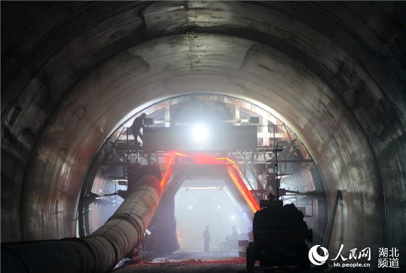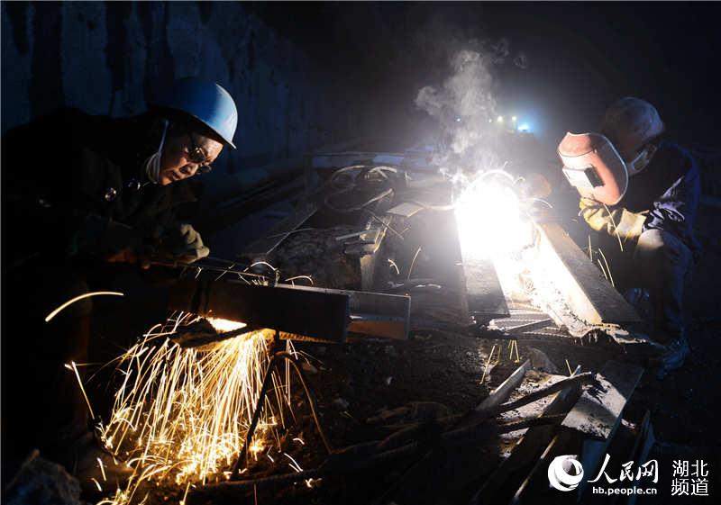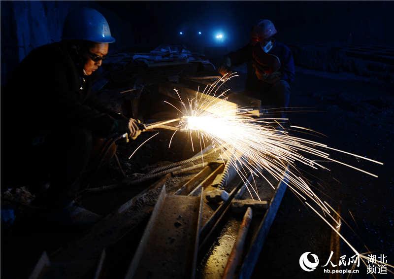 2月26日,施工人员在湖北省保康县保神高速分水岭隧道作业。