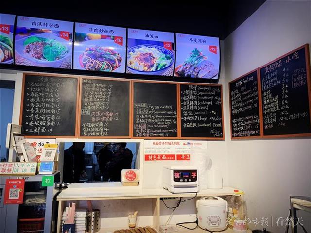 这家汉帅面馆,还有许多外国留学生光临,老板在菜单上备注了英文译名。