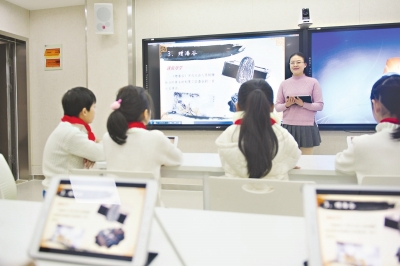 在录播教室,语文老师张竹君正在给五年级学生讲解《赠潘谷》这首诗。这是宋代大诗人苏轼赠给当时著名的制墨工匠潘谷的一首七言律诗。她请大家先根据注释和译文理解诗意,再进行小组合作探究,利用网络查找资料,了解古代还有哪些著名的制墨工匠,以及古代的制墨工艺。五(2)班陈彦瑾说:“用这样的方式学古诗词,一点也不枯燥。”