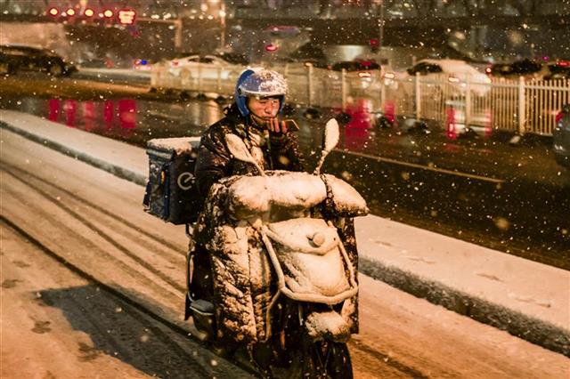 风雪夜里外卖哥 吴腊生摄