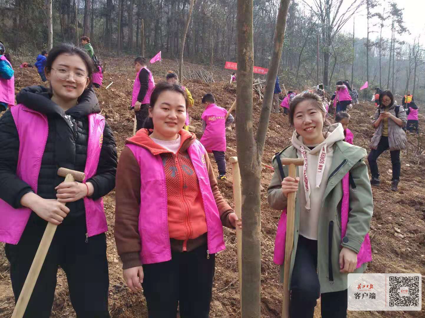 长江日报融媒体3月9日讯3月9日上午,200余位市民添绿蔡甸区嵩阳林场,其中巾帼志愿者、巾帼文明岗、最美家庭等100余位妇女代表开展了主题为“添绿大武汉 巾帼显风采”的植树活动。