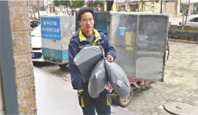 打过招呼,他把剩下的快递从车上搬下,熟练地贴好快递单,才抽出空来与长江日报记者交谈。
