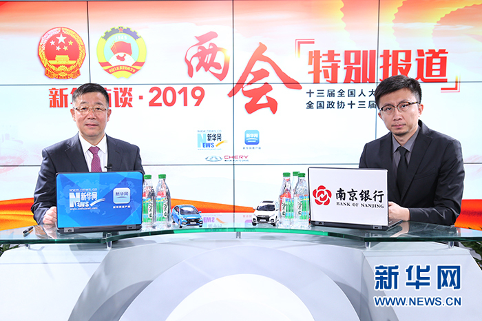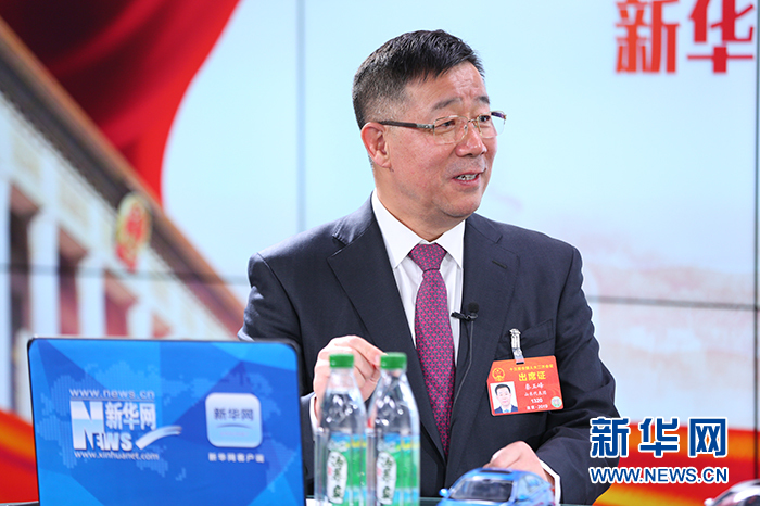 3月12日,全国人大代表、东阿阿胶党委书记、总裁秦玉峰做客新华网2019全国两会特别报道。新华网 陈延特 摄