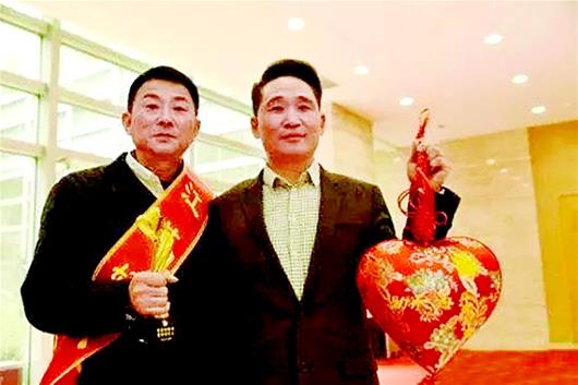图为张爱民获得“江苏好人”称号,孙胜荣(右一)飞回徐州祝贺