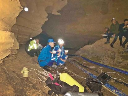 抽水设备和电缆运抵后,指挥部组织当地100余名干部、群众争分夺秒攀爬山路抬到事发的水潭边,铺设电缆启动水泵抽水。16日当天抽水近10小时,到晚上山脚的水都形成洼地,但洞内的水只下降了几厘米,几乎没任何效果。“洞里暗流太多,抽走了水其他地方就流过来,根本抽不干。”18日,一直守在现场的乡长彭钦钊告诉记者。