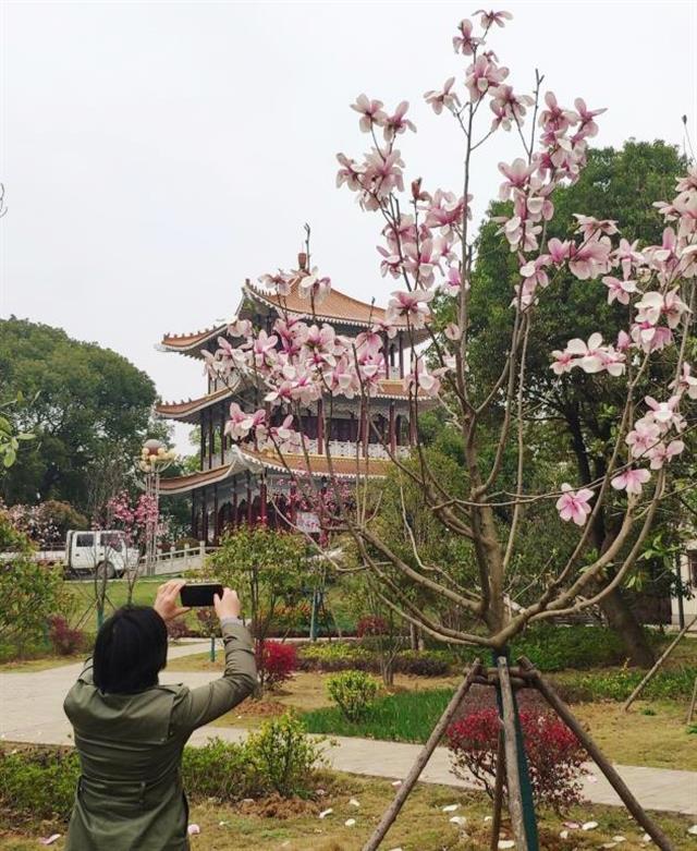 “玉兰先花后叶,花开时,无叶无绿,洋洋洒洒,毫无遮掩。白的纤尘不染,紫的神秘婉约。”公园相关负责人介绍,去年底,白玉公园绿化提升改造完工。2019年是白玉公园玉兰园全面建成的第一年。目前,除玉兰花外,公园的碧桃、茶花、红叶李等乔木也是花满枝头,吸引不少市民游玩观赏。