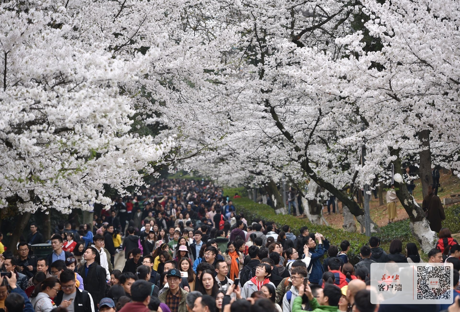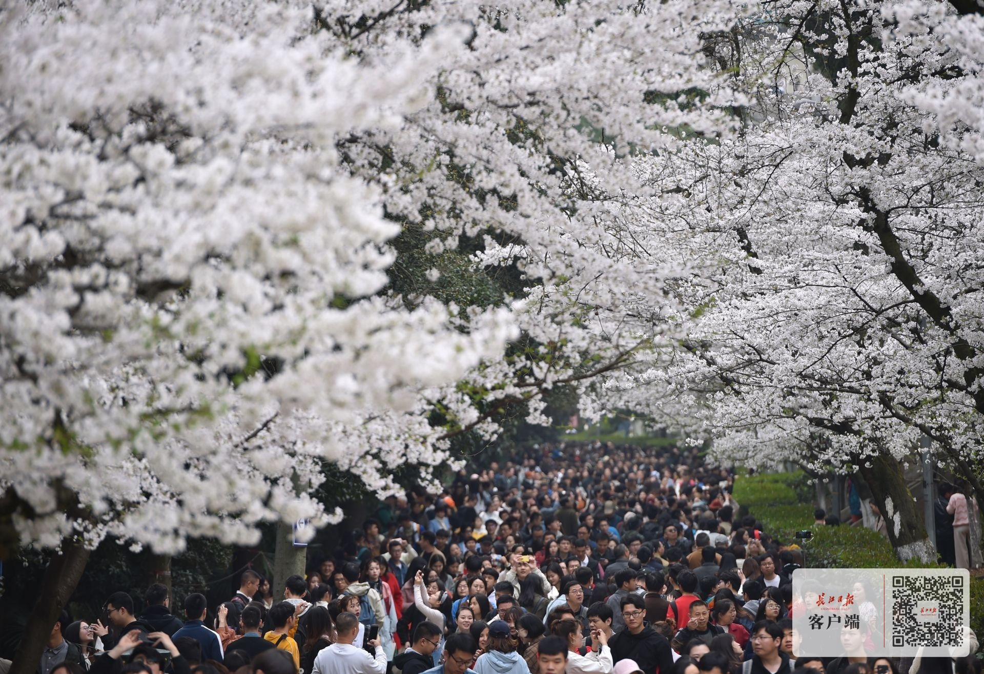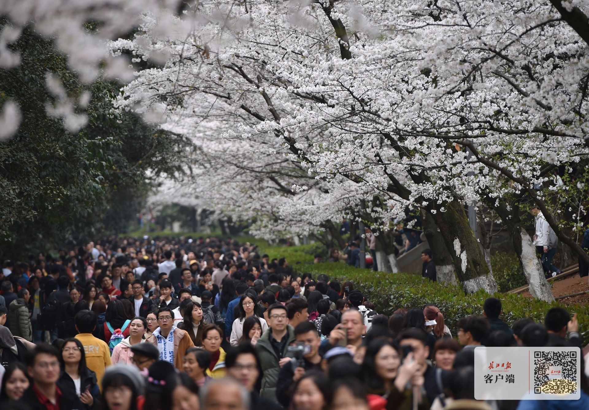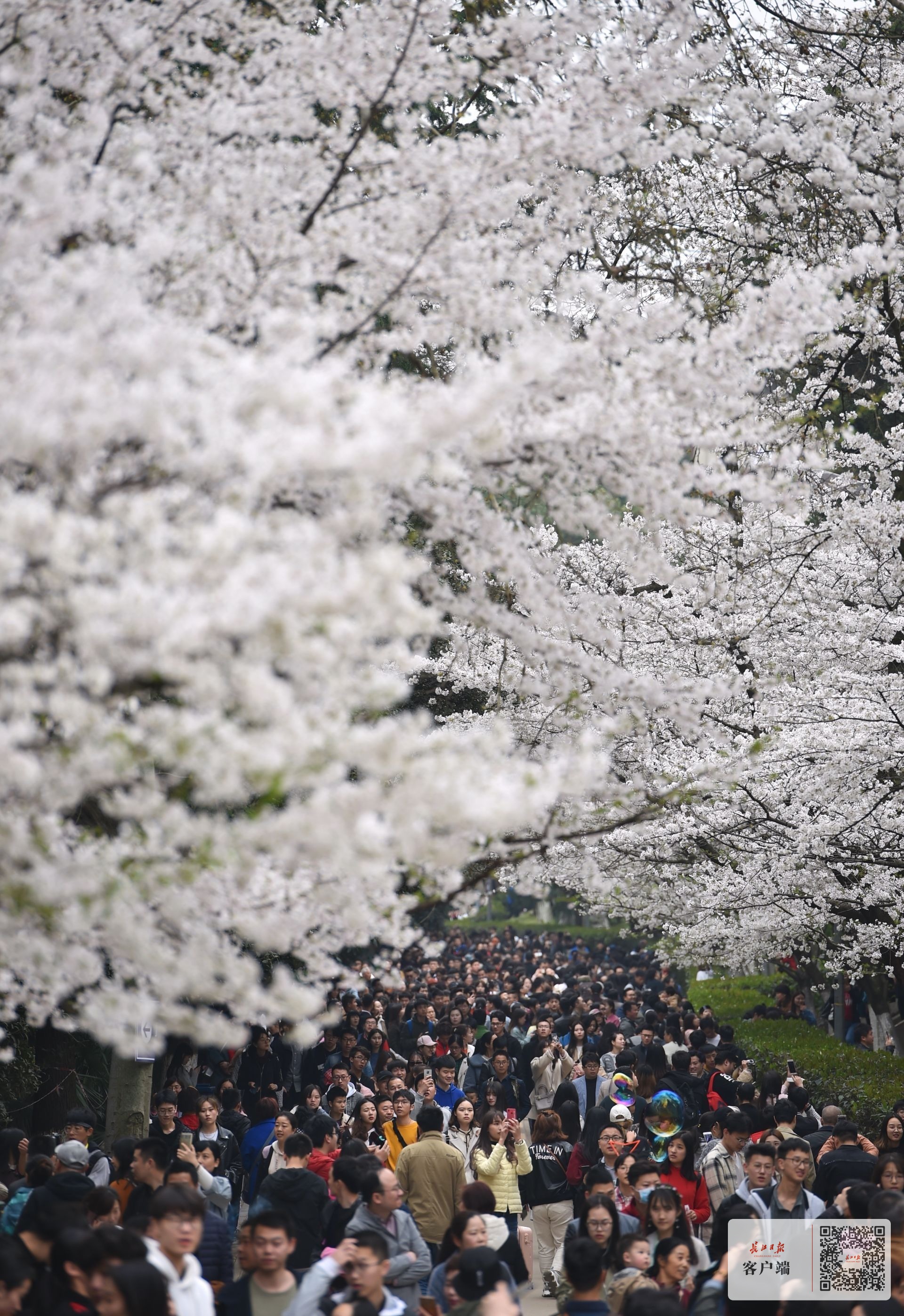 2019年3月23日午后,武汉大学,赏樱游客们徜徉在樱花大道。 记者郭良朔 摄