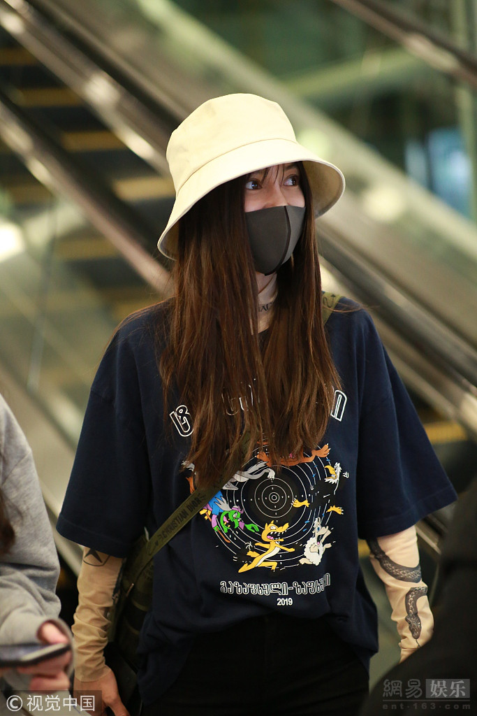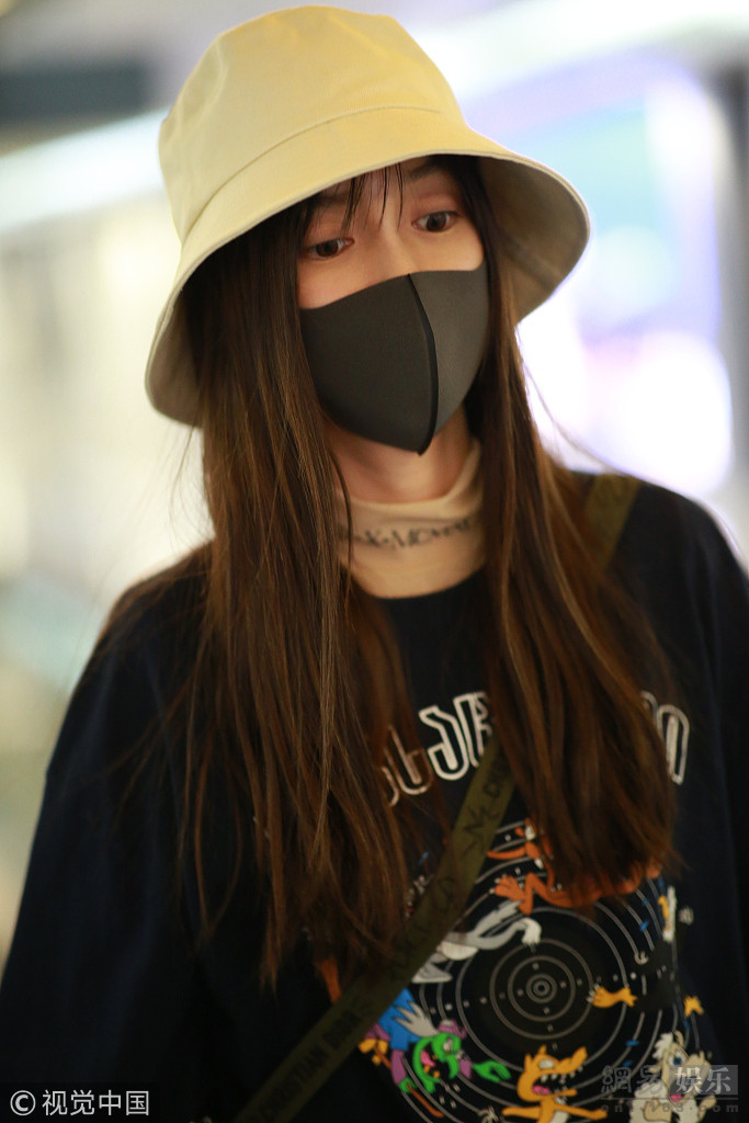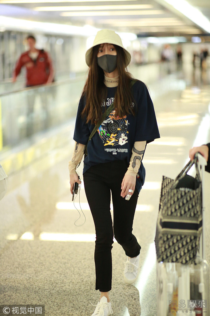 Angelababy现身机场,她头戴白色渔夫帽,一身全黑休闲装简约低调, 口罩遮面大眼吸睛,齐刘海造型仿佛嫩回“十八岁”,被粉丝包围人气火爆。