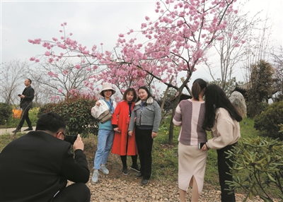 当日下午,记者在曾集镇雷都“樱花部落”景区看到,景区内樱花、油菜花竞相开放,美丽极了。各个景点都有不少前来踏青赏花的市民,他们有的带着孩子,有的是情侣,有的则是全家老小一起出动,非常地热闹。和朋友一同出游的市民张女士说:“听说曾集‘樱花部落’的花开得很好,今天有空就和闺蜜来看看花,放松下心情。”