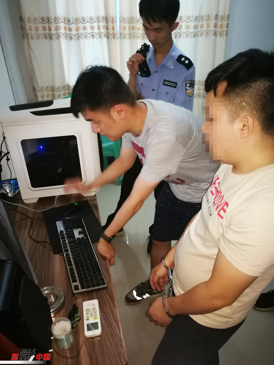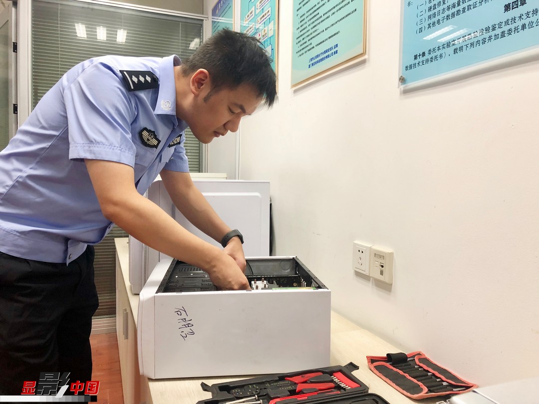 戴晓龙对扣押的涉案电脑进行电子数据检查。新华网发