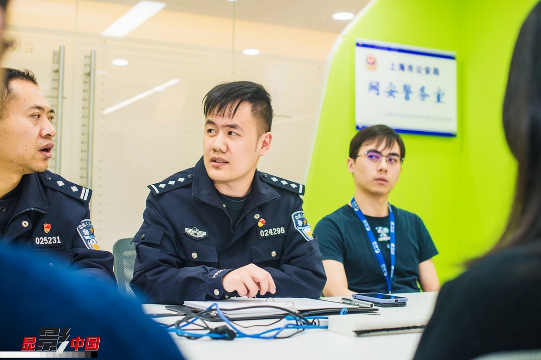戴晓龙在互联网企业网安警务室讨论工作。新华网 吴恺摄