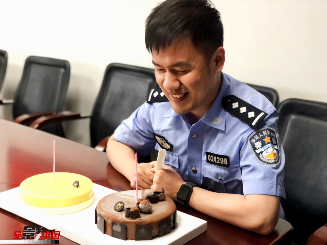网络消费日益普及的当今,网购中出现的侵财类案件也越来越多。网警,作为一支奋战在网络上的队伍,时时刻刻守护网络安全,也守护着群众的“钱袋子”。图为同事为他庆生。