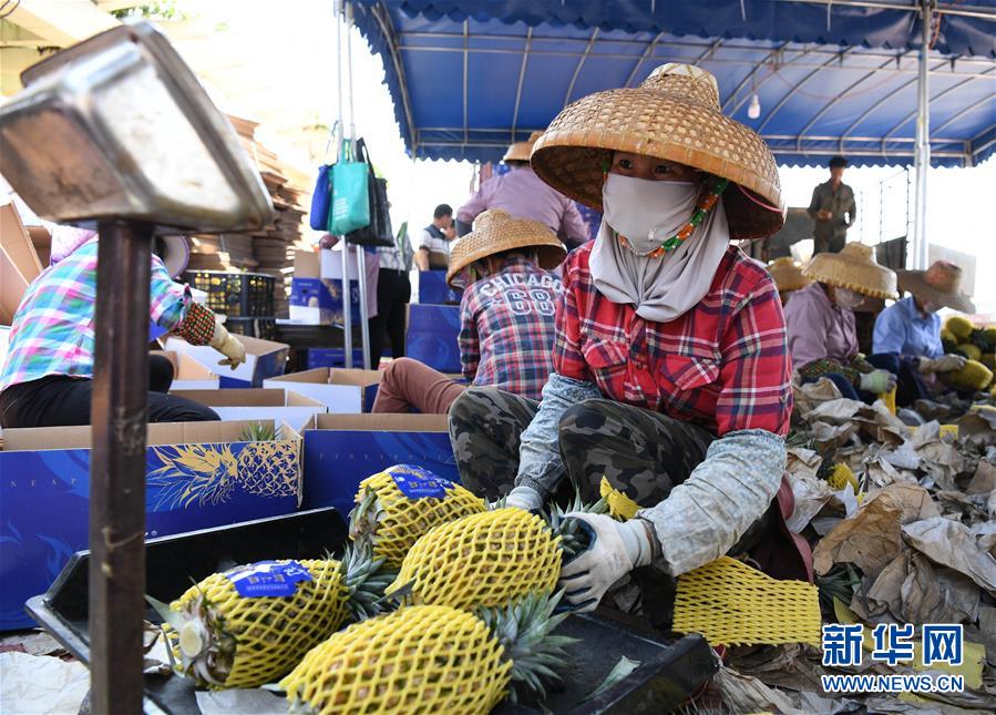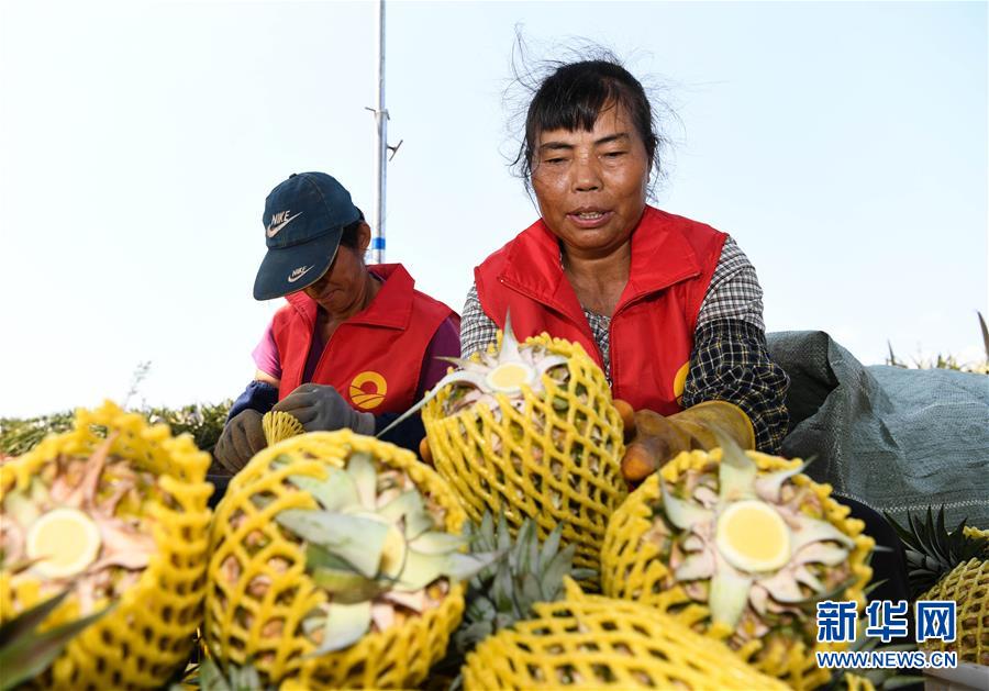 - 3月28日,广东农垦徐闻红星农场职工将菠萝称重装箱。 近日,广东省湛江市徐闻县的菠萝种植农场迎来今年的首批采摘。徐闻县是菠萝生产大县,种植面积约30万亩,被称为“菠萝的海”。 新华社记者 邓华 摄 新华社记者 邓华 摄
