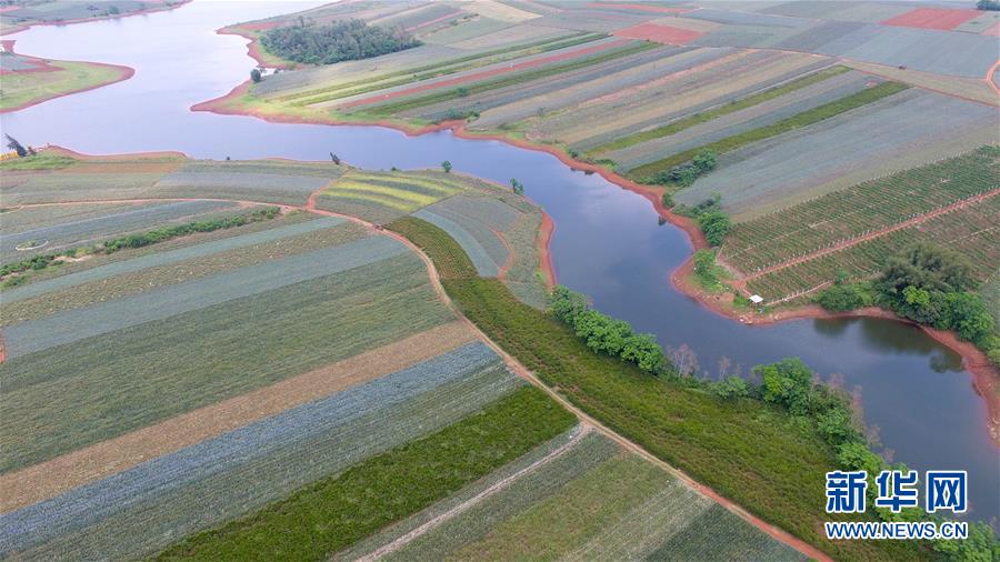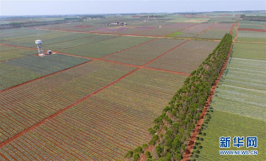 - 3月28日在广东农垦徐闻海鸥农场拍摄的以菠萝为主的多种作物农田(无人机拍摄)。 近日,广东省湛江市徐闻县的菠萝种植农场迎来今年的首批采摘。徐闻县是菠萝生产大县,种植面积约30万亩,被称为“菠萝的海”。 新华社记者 邓华 摄