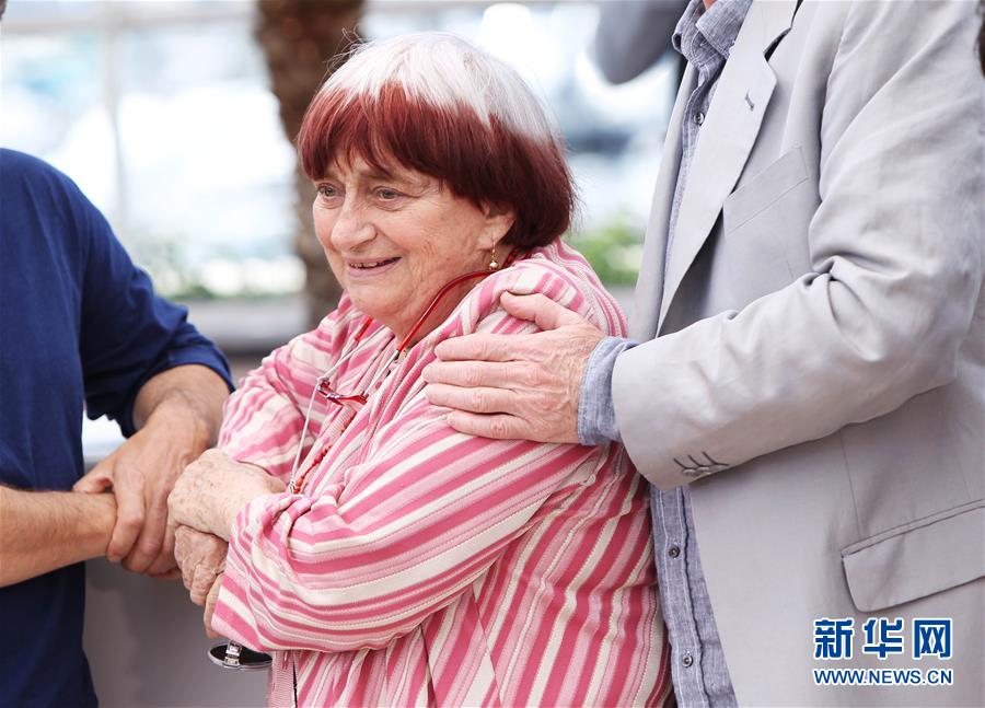 这是2013年5月17日,在第66届戛纳国际电影节上,法国女导演、“金摄像机”单元评委会主席阿涅丝·瓦尔达出席拍照式的资料照片。 新华社记者高静摄