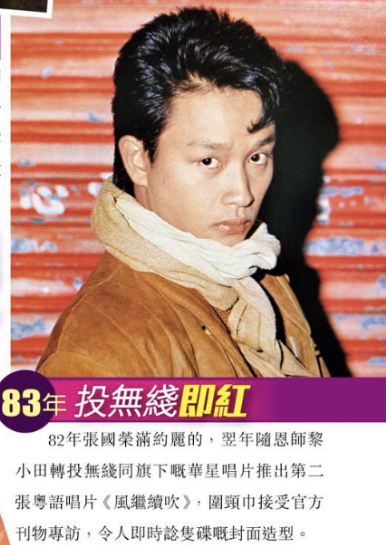 1983年,张国荣投身无线后大红,当年他接受一个刊物采访时拍摄了一组封面写真,照片中的哥哥穿着驼色外套,围着卡其色围巾,十分有大暖男的即视感。