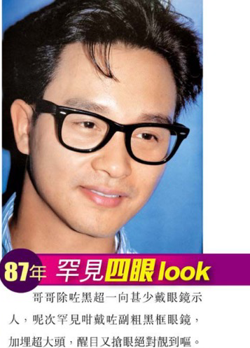 1987年,张国荣首次带黑框眼镜登场,一改平日酷炫风格,看上去十分斯文。