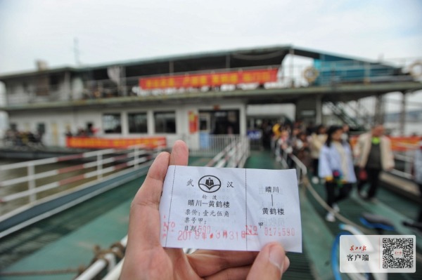 2019年3月31日17时29分,晴川码头,晴川-黄鹤楼航线最后一班轮渡的船票。记者苗剑 摄