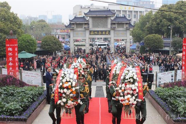 楚天都市报4月4日讯(记者向清顺 通讯员刘晶晶 李浩 陈婷)苍松肃立,翠柏静哀,又是一年清明到来时。今天上午,在扁担山公墓喷泉广场,汉阳区举行“传承·2019清明祭英烈”活动,缅怀烈士表达哀思,让烈士精神薪火相传。