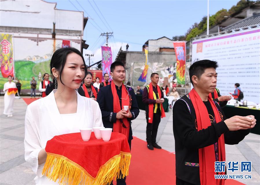 4月6日,福鼎市太姥山镇方家山村村民参加“喊山祭茶”仪式。 当日,“首届闽东畲族喊山祭茶典礼”在福建省福鼎市太姥山镇方家山村举行。 近年来,福建省福鼎市大力发展特色茶产业,将茶产业打造成为福鼎市乡村振兴和百姓致富的绿色产业、支柱产业。2018年该市茶园面积达20.3万亩,涉茶总产值达56.88亿元。 新华社记者 林善传 摄