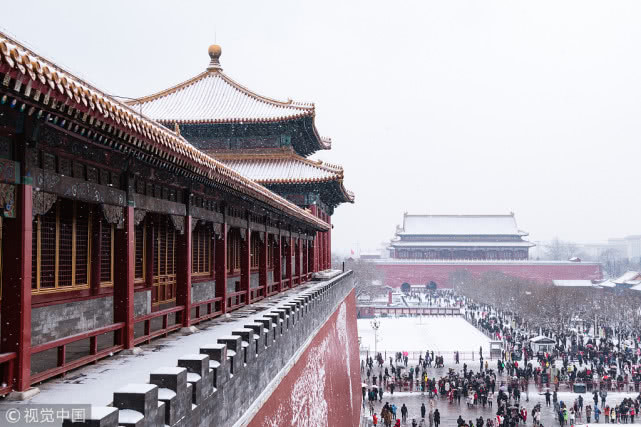 2019年2月12日,北京迎来降雪天气,故宫游客不减