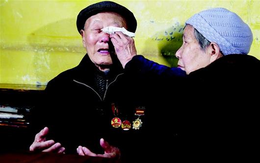 图为谈起牺牲的战友,张富清泣不成声 新华社发