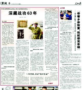 昨日,人民日报以《95岁老英雄张富清克己奉公永葆党员本色——深藏战功63年》为题,报道了张富清的共产党员风采;光明日报在头版以《战斗英雄张富清:心之所向九死不悔》为题报道;解放军报转载了新华社的通讯《英雄无言——95岁老党员张富清的本色人生》。