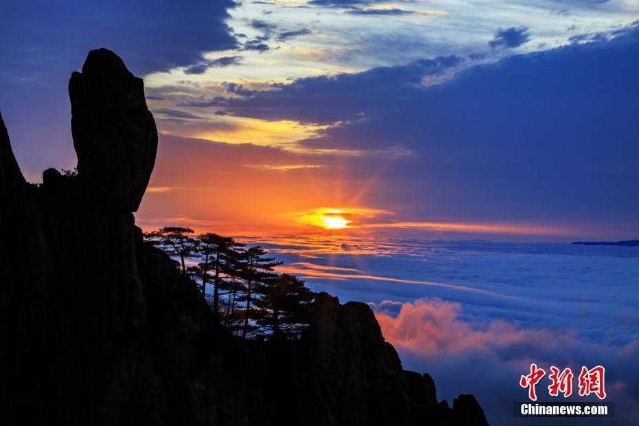 安徽黄山现云海日出 云浪滚滚金辉熠熠