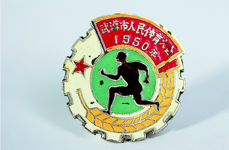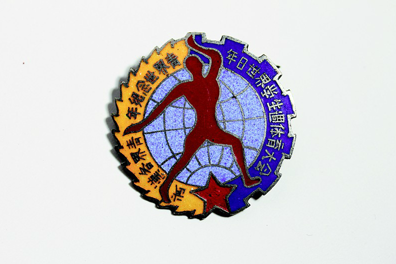 - 图为:上世纪50年代初武汉各界青年纪念世界青年日世界学生周体育大会徽章。