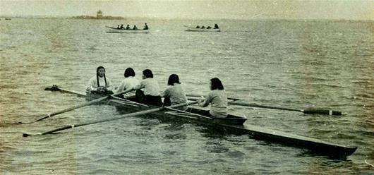 - 图为:东湖竞技。1958年,女子四人有舵手赛艇训练。