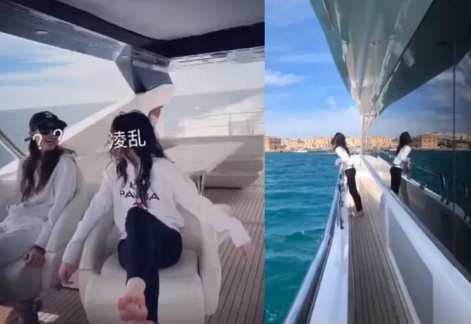 李嫣和闺蜜在游轮上各种合照,玩得相当开心