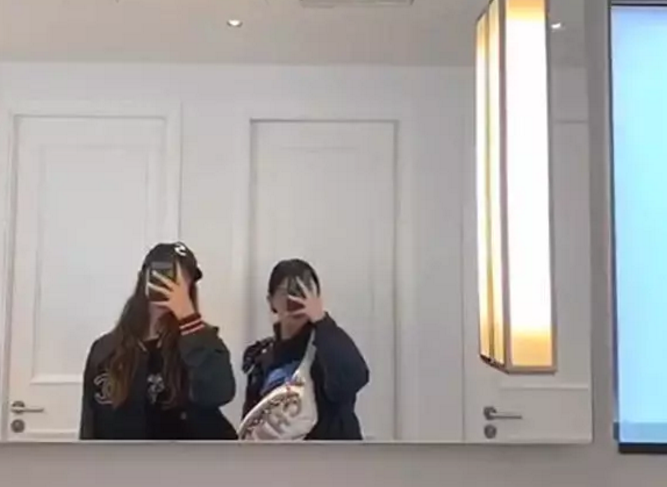 李嫣每次外出游玩都少不得在洗手间自拍。和闺蜜两人一个穿着香奈儿夹克,一个背着香奈儿包包,一看就出生于富贵家庭。