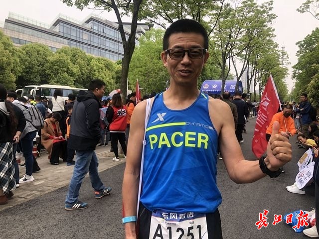 长江日报融媒体4月14日讯(记者王亚欣)14日11时30分,汉马4小时领跑员易进迈着匀速步伐轻松抵达终点。除了顺利完成领跑员任务外,易进也达成了自己的小目标——跑完人生的第100个马拉松。