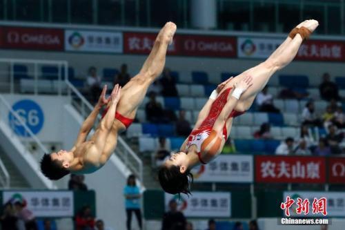 双人混合三米板,中国组合杨昊/昌雅妮在比赛中。(资料图)中新社记者 韩海丹 摄