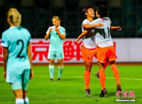 中国队7号王霜与11号王珊珊拥抱庆祝。(资料图)中新社记者 张畅 摄