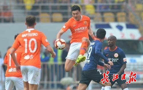 中超联赛第二轮比赛中,武汉卓尔1:0战胜北京人和。图为韩鹏飞在比赛中。 记者喻志勇 摄