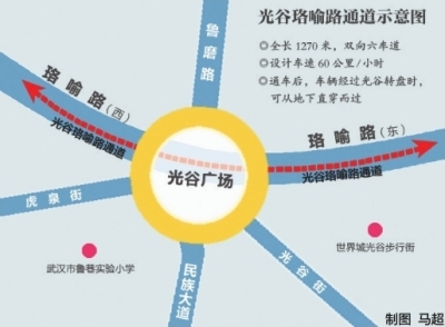 2019年4月19日光谷珞喻路通道通车,将对缓解光谷广场转盘地面交通压力起到积极促进作用。