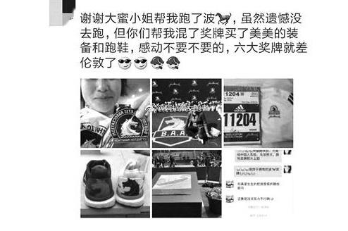 这次被处罚的3位选手,究竟是如何拿到参赛名额的,尚不得而知。不过他们却因不同原因而暴露。其中张建华是私自让跑友替跑,十分高调地发图晒朋友圈,并配文自我揭发:“谢谢大蜜小姐帮我跑了波马……你们帮我混了奖牌买了美美的装备和跑鞋,感动不要不要的,六大奖牌就差伦敦了。”