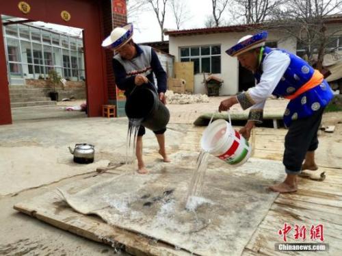 中新社记者 李隽 摄" />擀毡艺人洗毡。中新社记者 李隽 摄