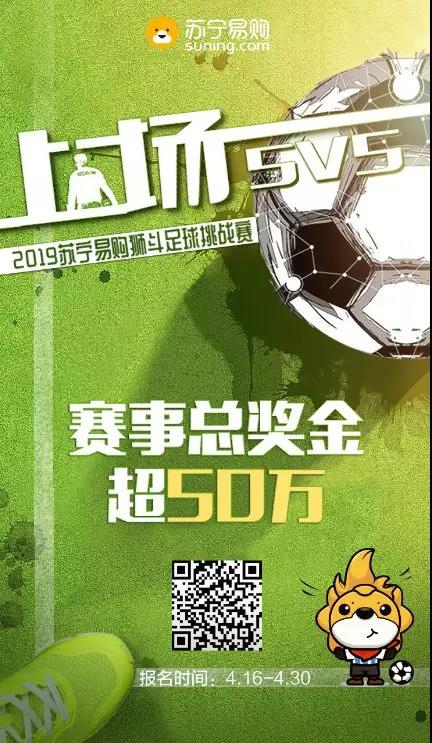 “2019苏宁易购狮斗足球挑战赛”即将于4月16日-30日正式开启报名通道,届时,全国球迷可以通过官方H5线上报名。与上届比赛相比,本届赛制有了一次大升级,例如比赛形式变成了更为激烈的5V5,观赏性得到提高,让更多的人参与其中,感受绿茵赛场的澎湃激情。